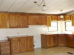 HUGE PRICE REDUCTION. Contractors' special. Pre-Mfgd home on piers with partial foundation with skirting on front and side. Being sold as is. Trim work missing around some of the windows. Third bedroom will eventually need new flooring. House in fairly good shape, but drive-way needs new drainage tile. Large eat-in kitchen open to living room. Laundry room with back door. Sits on hill with nice view of treed lot and village. New roof 2 years ago.