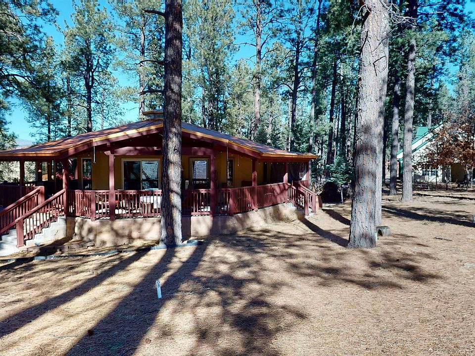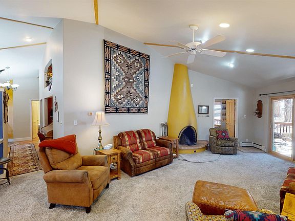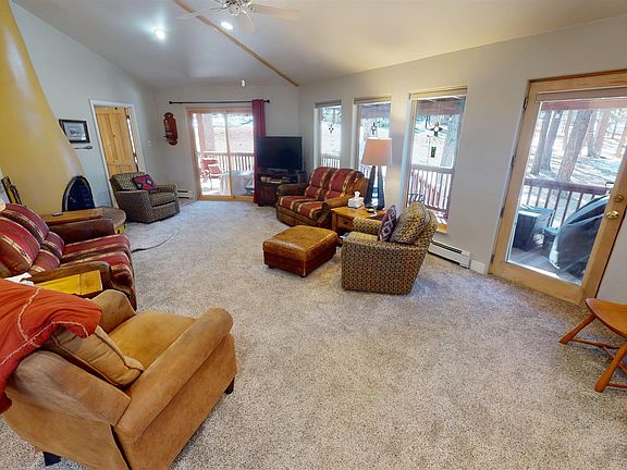 Stunning mountain home off the 6th green. Beautiful natural light showcases this unique and well maintained home. Living room kitchen area opens onto a relaxing covered deck overlooking the #6 green. Owners suite also has a door to the covered deck, and the ensuite bath has an amazing skylight with double sinks, walk-in shower and jetted tub. Finished basement has family room with a built in Murphy bed and a seperate room with ensuite bath. Large garage with ample storage areas/closets. Converted storage shed offers additional storage and workshop space including large door for golf cart storage and cut greenhouse on the south side with wind protected sitting area. Radiant heat system, Generac generator, new roof, pull out cabinets, new carpet, and a few new windows are just some of the upgrade this home offers. Conveniently located on a quiet cul-de-sac on the golf course with easy year round access. Located 25 miles from Las Vegas, 90 Miles from Santa Fe and 65 miles for Ta