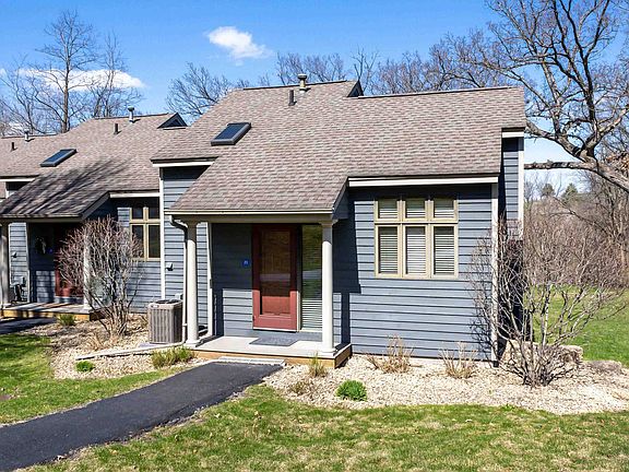 Incredible views and a picturesque location! Striking 2 bed/2 bath end-unit Valleywood Golf Villa with stunning views directly overlooking Eagle Ridge North Course#15 green and beyond! Light and bright main level offers open living room with converted gas fireplace, soaring cathedral ceilings with skylights above, airy dining area, galley kitchen with eat-at breakfast bar, generous guest bedroom with well adorned adjoining full bath, stack washer and dryer, and storage/utility space. Ascend to the upper level to find a large loft space perfect for family room area, office or additional guests that features more windows for natural light and window seat space, spacious primary bedroom with cathedral ceilings and elevated views of the golf course, and a nicely appointed private bath with shower and skylight above. Enjoy the outdoors and golf experience from the rear deck or relax and unwind on covered front porch. Both rear deck and front porch updated with composite flooring, and deck also has updated posts and rails. New A/C condenser in 2024. Range and garbage disposal updated since 2022. Location is just a short drive to Galena Territory amenities including Lake Galena and Owners' Club with indoor/outdoor pools, fitness facility, game room, and multi-sport gymnasium, plus the golf, spa and dining of Eagle Ridge Resort & Spa. 2025 annual association fee of $1360 and 2025 monthly association fee of $330 are applicable.