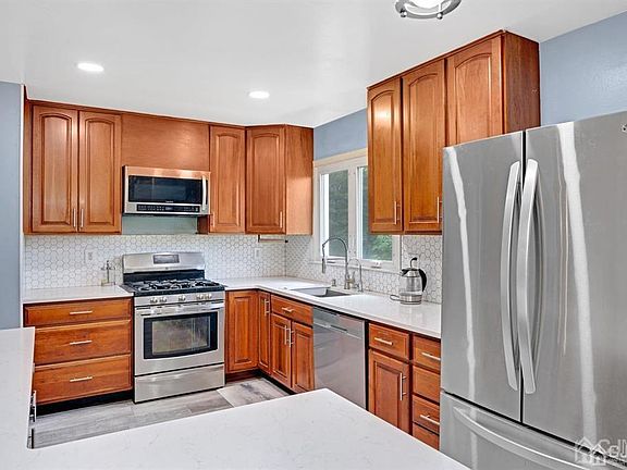 This bi-level home is situated on a quiet street with low traffic, corner lot, tranquil backyard, facing northeast. It offers spacious accommodation with five bedrooms and three full bathrooms. The house features an updated eat-in kitchen, perfect for culinary enthusiasts, updated baths, a formal dining room for family meals. It has a 2-car garage and 6-car driveway. The cozy family room boasts a wood burning fireplace, creating a warm and inviting atmosphere. The hardwood floors, recessed lighting, enhance the overall aesthetic of the home. Solar panels, newer windows and patio door, insulation contribute to the home's energy efficiency and reduced utility costs. The finished basement provides additional living space, offering flexibility for various uses. The property is in the highly regarded East Brunswick blue ribbon school district, ensuring excellent educational opportunities for residents. Transportation options are conveniently accessible, providing easy commutes to both New York and South Jersey. Close proximity to Rt. 18, Rt. 1, NJ Turnpike, and the East Brunswick Transportation Center offer multiple travel options. East Brunswick offers a range of amenities, including parks, recreation areas, a water park, hotels, restaurants, shopping centers, and medical facilities. Residents have access to a variety of activities and services, making this location highly desirable for families and individuals alike. Seller's home warranty is transferable to the buyer. Solar panels are owned. Square footage from tax records.