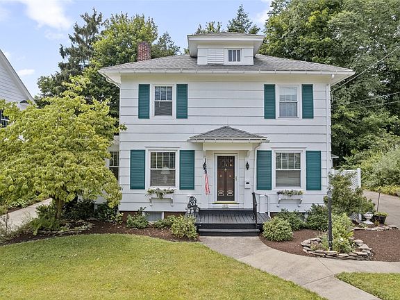 Rich in character, this charming home was built in 1925 and has been thoughtfully updated with modern amenities. Features include hardwood floors, replacement windows, a newer roof, a 2-car detached garage, and a cozy wood-burning fireplace in the living room. Sliding doors off the kitchen open onto a spacious back deck with multiple levels, perfect for entertaining. The yard is partially fenced and beautifully landscaped to feel like a private oasis, adding to the appeal of this lovely property.