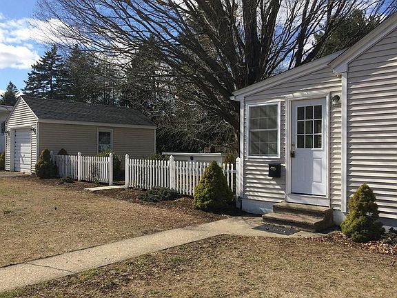 Wonderful single level home in a lovely, established neighborhood setting near Holyoke Community College. This 3 bed/1 bath property is well maintained with many updates and improvements. Wood and tile flooring throughout. Sparkling, renovated kitchen with a glass tile backsplash, updated countertops and cabinets. Dining room with wood flooring and sweet built-in china cabinet opens up into a wood floored living room with plenty of space for gatherings. Nice flow from kitchen to dining room to living room. Filled with light and warmed by a pellet stove, the nicely finished, enclosed sunroom/mudroom expands the living space and provides easy access to the yard. Outdoor space offers nice landscaping, perennial plantings and a patio. Huge basement. One car detached garage. It even has a white picket fence!