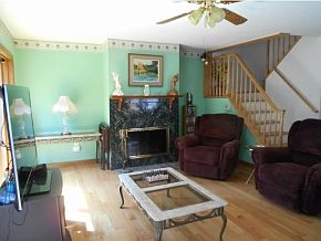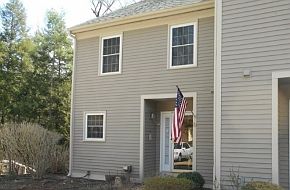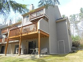 Stunning end-unit townhouse. Updated kitchen, hardwood floors throughout first floor. Bump-out Dining Room with cathedral ceiling! Two decks overlooking the brook and woods. Beautiful fireplace. Finished lower level with walk out to patio! New water heater. All appliances stay including washer and dryer. Hard-wired for generator! Colligan Water Treatment system! Updated windows. Tranquil, serene setting ! Also comes with a carport. Absolute move-in condition.