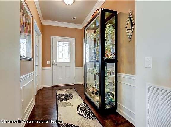 RARE & HIGHLY DESIRED Martin Ray built in 2015. 3 Bedrooms plus a Bonus room and 2 baths. BEAUTIFUL OPEN FLOORPLAN is an entertainer's delight as it welcomes you through the front entry via a COVERED PORCH and features hardwood floors, White cabinets, gourmet appliances, an enormous center island, walk-in pantry, closets galore and more. The retractable awning over the rear patio creates the perfect environment for relaxing! Equestra is Monmouth County's Premier Active Adult Community conveniently located minutes from the GSP & NJ beaches. Surrounded by a 193 acre Nature Preserve with lantern-lit walking paths, an 18,000 square foot Clubhouse w/ indoor & outdoor saltwater pools, fish stocked ponds, community gardens, tennis courts, bocce, fitness center and so much more...