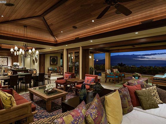 Stunning single-level residence in The Pinnacle, Kaanapali Golf Estates' most exclusive enclave. This tropical estate was custom built with the finest quality of craftsmanship. It features a fabulous great room, spacious gourmet kitchen and dining area all opening directly to the expansive covered lanai and pool and spa. Striking views of the ocean, neighbor islands Lanai & Molokai and sunsets can be enjoyed year round. Gracious Hawaiian-style accommodations for up to 10 family members and friends include an exceptional master suite, three additional guest suites and a very private ohana suite attached to the three-car garage with its own separate entrance as well as a home office. The property is privately situated within an exclusive gated community central to the Kaanapali Resort that provides easy accessibility to the beach, golf, Whaler's Village and other great Maui activities. Offered Turn Key.