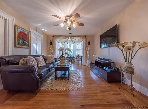 Pristine three family home located in the sought out area of the Kingston Waterfront District. First floor apartment consisting of 3 bedrooms, living room, eat in kitchen, and bath, glistening hardwood floors, french doors, ceiling fans, central air washer/dryer... Second and third floor one bedroom apartments w/ hardwood floors, quaint kitchens. Charm and beautiful architecture throughout this Kingston gem- which would make it worth while to turn it back into a single family home if desired.Also would be a gr Perfect property for owner occupied...live in the one unit and collect the rent to live expense free! Three bay detached garage lends itself to many possibilities to bring in extra income and or to bring back to its natural beauty.