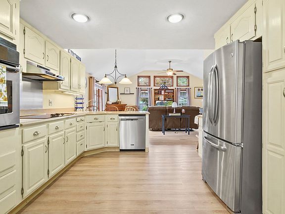 Cozy electric fireplaceWelcoming front porchPartially fenced yardExpansive back deckAbundant storage optionsLarge unfinished basementVaulted ceilings