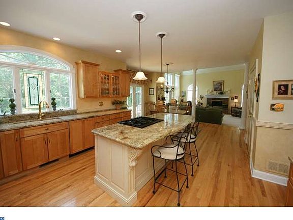 In a park like setting at the end of a cul-de-sac sits this handsome custom built home, beautifully and extensively updated inside and out. Better still, its setting is a feast for the eyes, enhanced with lawns, fully grown trees to assure privacy and plantings expertly chosen to bloom throughout the seasons. This choice property is designed to make family living and entertaining a joy. The soaring Foyer welcomes you to the home's easy flow and special touches, including vaulted ceilings, exquisitely detailed moldings and ceiling medallions, and the many French doors between formal and informal rooms as well as to the expansive terraces. On the main floor the generous Kitchen includes sleek maple cabinetry, granite counters and island, pantry and double ovens and warming drawer to delight every chef. It opens to a Great Room with a fireplace ? gas for convenience or ready for reversion to wood-burning ? as its architectural focus and with double- height windows and French doors leading out to the terraces and an enticing in-ground pool. There is a formal Dining room and Living Room with bookshelves, a second stairway upstairs, and of course a charming powder room. On the second floor the Master Bedroom includes a large luxury Bath. Roomy closets everywhere include organizers. Three other large bedrooms are served with the hall Bath, and views from every window to the outside greenery bring natural light into each one. The finished basement includes its own kitchen, a proper bar, spaces for media, play, exercise, parties and French doors for strolling in and out to the terraces and pool. This is a special one, so close to the charms of Hopewell's galleries, antique shops and eateries yet so uniquely a true gem. Minutes to Princeton, I-95, trains and onward, plus a top-rated Hopewell Schools. ONE YEAR HOME WARRANTY INCLUDED!