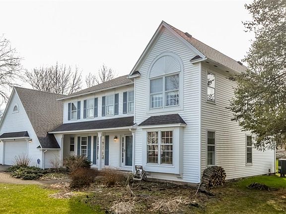 Colonial home in friendly neighborhood at the end of a Cul-de-sac. Plenty of room with 4/5 bedrooms and private Master Suite. New rugs and flooring in all the upstairs bedrooms with new paint throughout the home. First floor laundry, office/bedroom along with a formal dining room, family and living room. Large basement has potential for finished space and a large walk-in cedar closet. Fairport schools and Electric.
