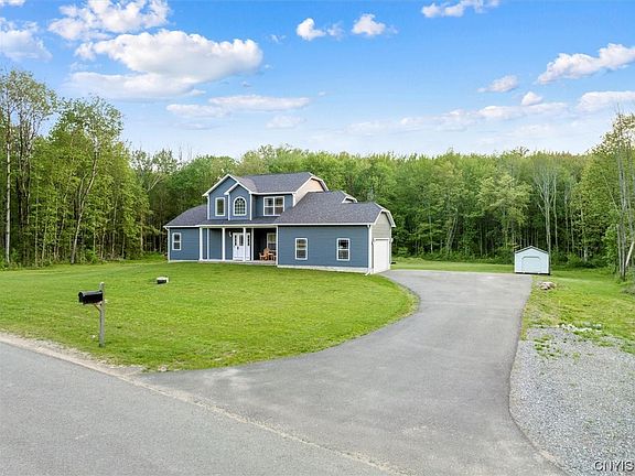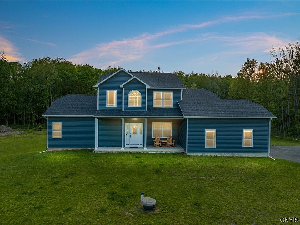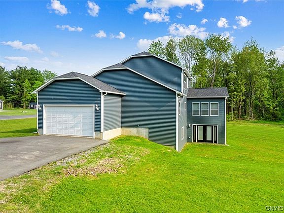 THIS BEAUTIFUL CONTEMPORARY 2350 SQFT 4 BEDROOM 2.5 BATH HOME & OVER 1.5 ACRES, BUILT IN 2019 IS READY FOR ALL TO SEE & READY FOR ITS SECOND OWNER! THIS HOME HAS A QUIET ST, AND IS STILL GROWING. THE BACK LARGE YARD IS CLEARED AND COMPLETELY PRIVATE. THE OPEN FLOOR PLAN INCLUDING LARGE KITCHEN, GORGEOUS GRANITE COUNTERTOPS WITH A LARGE TWO TIERD BREAKFAST BAR THAT HAS MATCHING GRANITE FLOWS INTO THE REST OF THE HOUSE. NEW APPLIANCES THROUGHOUT INCLUDING A TRANSPARENT LG REFRIGERATOR, 6 BURNER GAS STOVE, DISHWASHER, WASHER & DRYER. LARGE WINDOWS FOR TONS OF NATUARAL LIGHTING BRINGS EXTRA LIFE TO THIS BIG HOUSE W/ VAULTED LIVING ROOM CIELINGS. TWO CAR GARAGE WITH TESLA WALL MOUNT CHARGER. HUGE 1600+ SQFT BASEMENT WITH WALKOUT FRENCH DOORS ALLOW FOR ADDITIONAL SQFT ONCE ITS REFISNISHED. RICH MAHOGONY COLORED HARDWOODS ARE GORGOUS THROUGHT THE FIRST LEVEL & ALL CARPET UPSTAIRS. FIRST FLOOR LAUNDRY. KITCHEN DRAWERS HAVE AUTO SOFT CLOSE. MASTER BEDROOM HAS A DROP DOWN INLET LITE CEILING DOUBLE SINKS AND SEPERATE MAKEUP NOOK ALL WITH GRANITE COUNTERTOPS. GAS FIRPLACE & SO MUCH MORE I CAN'T LIST EM' ALL! MICRON, RT 81 & ONIEDA LAKE ARE LESS THAN 10 MIN AWAY! COME SEE IT FOR YOURSELF TODAY!