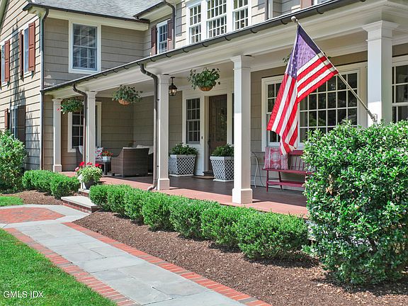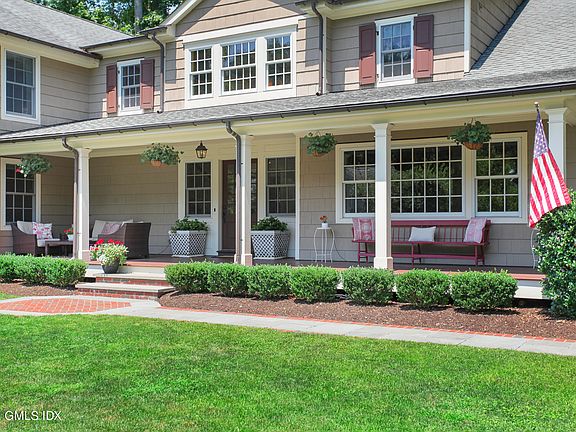 Prime Riverside cul de sac location. Easy access to Metro-North train, Old Greenwich town, and Greenwich Point beach. Great 4,720sf family home on a level half acre with 4 bedrooms/5.2 baths. 1st floor: Large Entertainment room, Kitchen/Family room w fireplace, Formal Dining room w pocket glass French doors, Office w built ins, In-law/Guest bedroom w ensuite bath and separate laundry, Mudroom, plus a full bath and formal powder room.French doors along the rear of the house access the blue stone patio, perfect for entertaining and enjoying the serenity & privacy. 2nd floor:Master suite w 2 large walk-in closets, two double bedrooms w ensuite baths, laundry room. Finished and completely dry Lower Level. Potential pool site and potential expansion. 2 car attached garage with automatic doors.