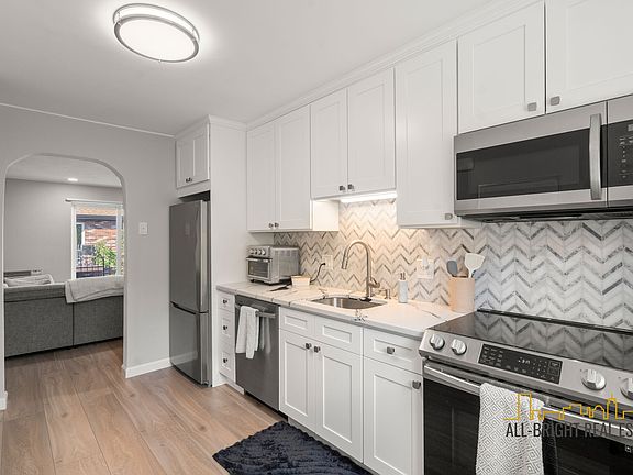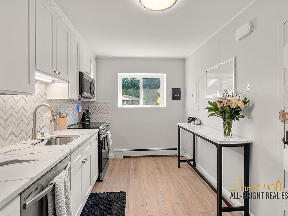 Located on the Brookline/West Roxbury line, this beautifully renovated top floor condo with a private balcony is in the charming Chestnut Village community. This condo has a stunning kitchen with stainless steel appliances, quartz countertops, white shaker cabinets, and a stone backsplash. Throughout the condo you have luxury wide plank vinyl floors, recessed lighting, great closet space, updated windows, and a built-in wall AC. Enjoy the chic bathroom with marble floors and designer grade tile. This complex is a close drive to multiple shopping centers, grocery stores, restaurants, and other conveniences. Chestnut Village offers amenities like an inground swimming pool, tennis courts, playground area, and in-building laundry. One parking spot is included and ample visitor parking spaces are available. 10 month lease term