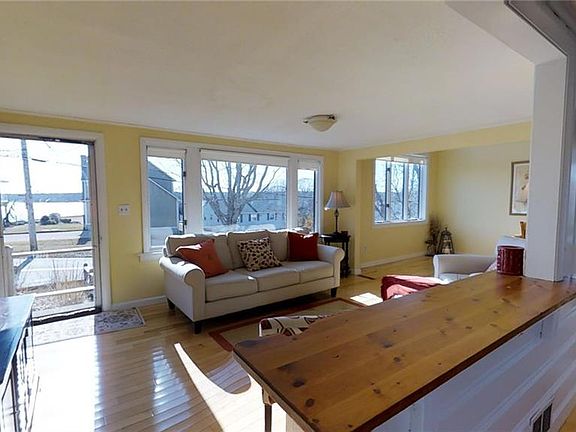Water view on three sides on HARBOUR ISLAND! Bright & sunny contemporary ranch featuring open floor plan, vaulted ceilings, hardwood floors, along with large deck off dinning area & kitchen for outdoor grilling, dining, and entertainment. Corner lot walking distance to Pt Judith Pond, and association beach and marina. Wonderful sense of community without all the traffic and hustle and bussell of being right on the beach yet only a few miles away. Close to all town shopping and amenities and Galilee fishing village. You can even bike to the Block Island Ferry! This is not a drive by the views are wonderful in the house and on the deck. Come visit and hopefully stay awhile.