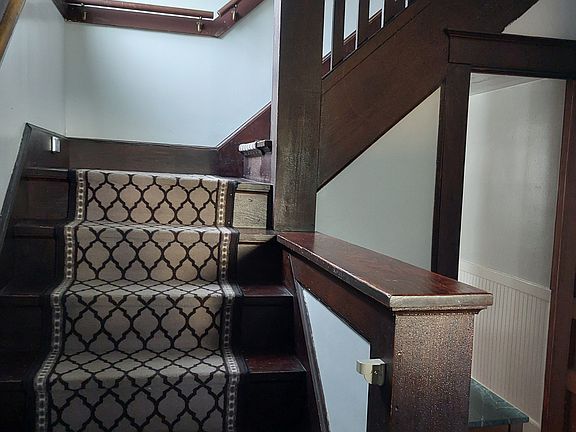 The welcoming foyer of this lovely Arts and Crafts era, 'Four Square' style home is stunning. Original trim, beautiful hardwood floors, grand open casements in the living room lead to a lovely formal dining room with a classic built in hutch, so well preserved. The updated eat-in kitchen has plenty of light, and a gas range! and it connects directly to a spacious outdoor deck, partially covered, so you can sit with your morning coffee and enjoy it in any weather. And if you are a 'porch dweller', this home has a front porch that won't disappoint! The upper floor has three bedrooms, all with hardwood floors and an updated bath. But wait! There's more! the walk up attic has plenty of storage and a lot of potential. The list goes on, but you'll just have to come see it all for yourself!