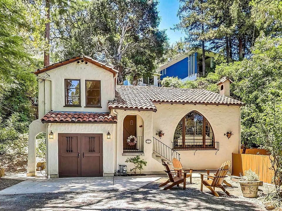 This historic Spanish Casita built in 1934 is a neighborhood charm. Rumor has it that the home was built by the production studio for actor Johnny Weissmuller, the original Tarzan, as his cherished summer home. Nestled in the lush, tree-covered Oak Springs neighborhood, this captivating residence boasts a brand-new foundation and a wealth of classic charm. With 4 bedrooms and 2 bathrooms, this home exudes character with arched windows, a formal dining room adorned with crown molding, and a living room featuring an open beamed ceiling, gas insert fireplace and hardwood floors. The modern kitchen offers updated amenities, blending seamlessly with the home's timeless appeal. Additional amenities include brand-new patio concrete and retaining walls, an extra-large storage area, EV hookup, and a newer sewer system installed in 2019. Immerse yourself in the tranquil, wooded hideaway surrounding this generously sized lot, & enjoy the proximity to the historic Oak Springs Pool where Weissmuller is said to have swam as an Olympian. Conveniently located near downtown Orinda Village, Orinda BART and HWY 24 ramps, this peaceful retreat offers an easy trip to Walnut Creek or San Francisco. Discover the perfect blend of history and modern comfort at this iconic Orinda residence.