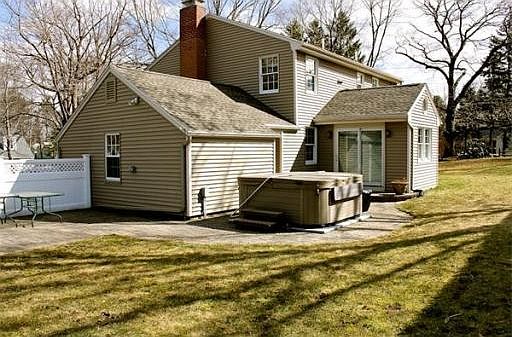 Just look at the curb appeal of this nicely maintained Colonial! Enter into the living room with a gas fireplace, dining room, den, full bath and office. The kitchen offers stainless appliances and a dining area with a cathedral ceiling and access to an inviting patio with a hot tub. The 2nd level offers a full bath, 3 bedrooms, 2 good size with cathedral ceilings and skylights. The master has walk in closet and half bath. Central air, sprinkler system, 1 car garage.