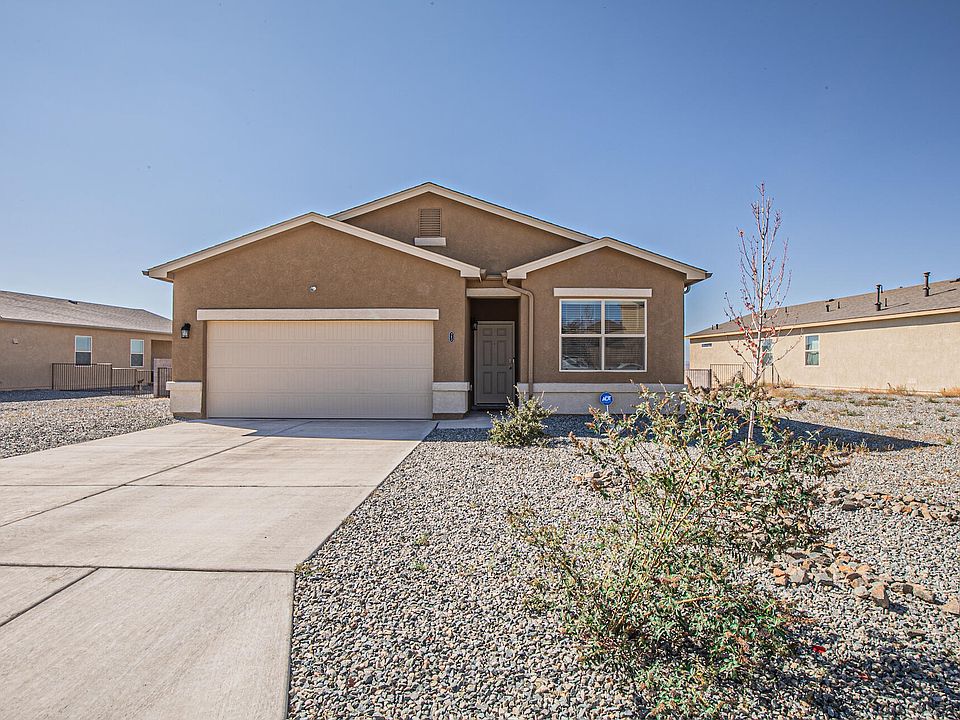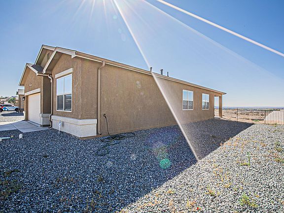 Don't miss out on this rare opportunity situated in the Los Lunas neighborhood of Eastland Hills with an assumable, low-interest mortgage! Almost new (March 2022), 4 bedroom home on over a 1/4 acre with an efficient, split floorplan; window blinds throughout; durable vinyl and carpet flooring; large utility room; low E windows; split hall bath; refrigerated air and finished garage. The huge backyard offers endless possibilities, including unobstructed sunset views and backyard access.