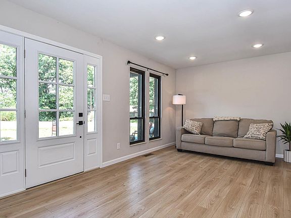 PRICED REDUCED!! Don't miss the opportunity to live in the beautiful Enchanted Forest Subdivision! Totally MOVE-IN ready!! Located on over half an acre this 4 bedroom/3 bathroom ranch home is fully renovated. Large open floor plan with new flooring throughout. Dining room and living room with woodburning fireplace, French doors open to a brand new tiered deck that backs to trees. The updated eat-in kitchen features a bay window, new stainless steel appliances, cabinets and granite countertops. Three large bedrooms have new carpet and lots of closet space. Full finished walk out basement with additional bedroom and full bathroom, family room, brand new HVAC system and large unfinished utility area with extra room for storage. Two car oversized tuck under garage is a great spot to add an extra work space or storage.