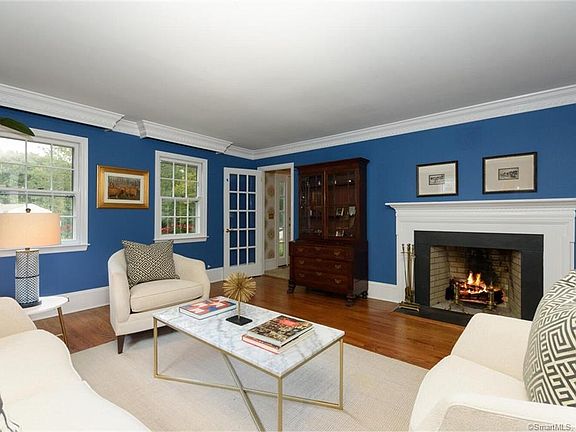 23 Windy Ridge Place is a 4 bedroom, 4.5 bath Colonial located on a desirable cul-de-sac in South Wilton. Situated on 2.21 acres of beautiful level land, a property like this is not often found in Fairfield County! Sunlight floods the eat-in kitchen, which has a gas range, wall oven, warming drawers and it's own fireplace. The family room is stunning with a wall of windows overlooking the magnificent yard and bluestone patio. The living and dining rooms are sophisticated with generous molding, fireplaces and flow nicely off of the entryway, perfect for welcoming guests during the upcoming holiday season. The master suite has its own fireplace, large bathroom and a walk-in closet. In addition to the bedrooms and laundry room on the second floor, you have a bonus room that could be used as a media/music room, game room and/or playroom for kids! On the 3rd fl. You will find another bedroom, full bath and sitting room. Outside, you'll find a large patio with built-in fireplace and grill, where you can entertain, or simply relax and enjoy the bucolic view that was originally a sheep farm. This beautiful home has so much to offer inside & out and fabulous commuting location - come see for yourself!