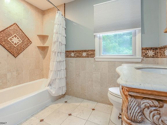 Welcome Home! This beautiful, renovated 3 BR, 1.5 bath home sits in heart of Denville. Hardwood floors throughout main and 2nd floor. Brand new custom kitchen w/ granite counter-tops, travertine tile+ Frigidaire SS appliances. Crown molding throughout, perfecting every room. Main bathroom has marble walls, flooring + elegant vanity w/ granite counters. Master bedroom + 2 additional bedrooms upstairs. Ground level has a 16x13 room, can be used as family room, exercise room... endless possibilities. Half bath/laundry room also located on ground floor. Out the sliders there is a 19x15 FL room w/ new sliding doors surrounding perimeter. Walk out to large patio. Backyard is fenced w/storage shed. Privacy trees + calming stream. Commuters dream, walking distance to train station, minutes to main highways.