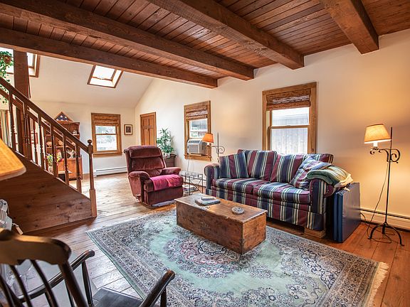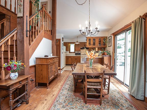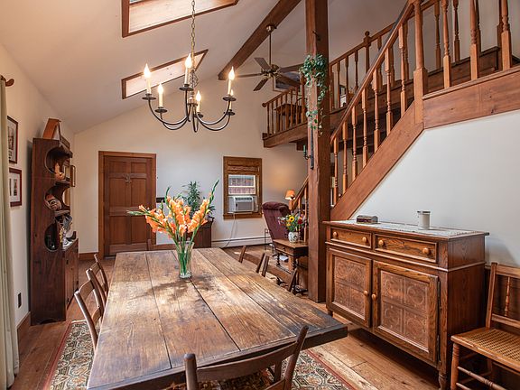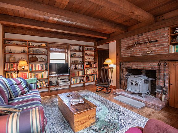 Charming New England cedar saltbox on desired country road. Top quality craftsmanship is found throughout this 2-3 bedroom home sited on 1.34 private acres. Character features include open loft, built-ins,wood beams, pine flooring throughout most of the home, skylights & top of the line wood burning stove. You are welcomed by the circular driveway and beautiful gardens.Open floor plan & spacious deck make this a wonderful home for entertaining. Main level bedroom with access to updated full bath. Upper level features secondary bedroom, spacious loft (currently used as 3rd bedroom) and is serviced by a full bath. An unexpected bonus is the lower level finished family room, offering additional living space. Newly painted interior with neutral decor. 2 year old Vaughn furnace & 2 year old indirect hot water heater. Newer kitchen appliances & washer/dryer. Several new Anderson windows. Why live in a condo when you can call this custom home your own? Don't miss this opportunity.