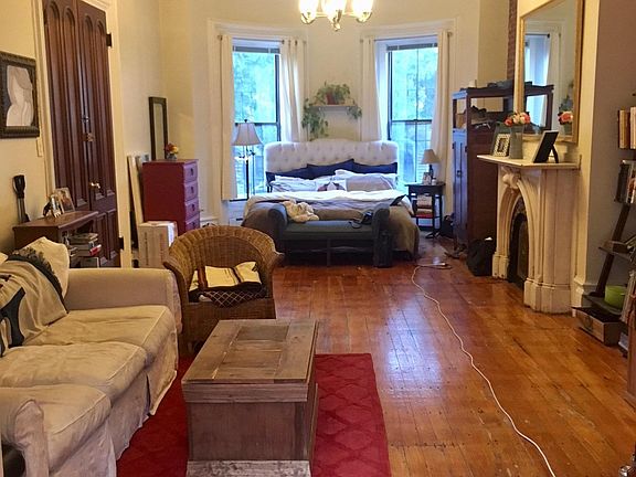 Spectacular & unique sun-lit space. Loft-like open layout. Dramatically high ceilings. Original crown molding & detail. Original plank wood floors currently being refinished! Huge windows w great natural light. Calming views of park & water fountains. Dishwasher/Disposal. Gas cooking. Accent walls of exposed brick. Laundromat directly across the street. Available NOW. Rent includes heat & hot water.