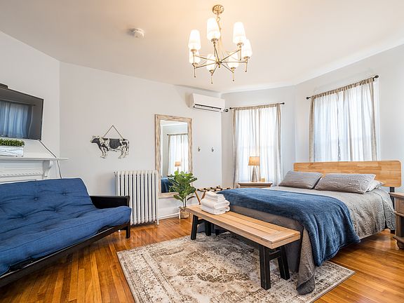 A fully furnished large private room in a great area of Jamaica Plain. The room has a large TV, queen bed and mattress, desk, chair, large walk in closet, rug, new curtains, lamps and a lot of extra design touches. All utilities and very fast internet are included, and common areas cleaned every 2 weeks. Also free washer/dryer machine and fully stocked kitchen. Hassle free and your renting direct from the owner. Available for December 1st. Your renting from the owner so no fees. Owner pays all utilities and internet, also no fees since your renting from the owner