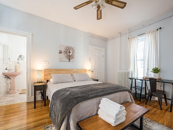 A fully furnished private room with a private bathroom in a great area of Jamaica Plain. The room has a queen bed and mattress, desk, chair, closet, rug, new curtains, lamps, TV and 2 closets. The room has its own heating and AC unit. All utilities and very fast internet are included, and the common rooms are cleaned weekly. Also includes a free in unit laundry machine and fully stocked kitchen. Hassle free and your renting direct from the owner. The house is 1 block from Centre street and a 5 mins walk from the Jackson Square T station, as well as all the main bus routes. You can walk to Whole foods, Stop N Shop, CVS, and dozens of restaurants/cafes in less than 10 mins. 1 year lease + , pay only 1st month and security deposit. Also your renting from the owner so no brokers fees.