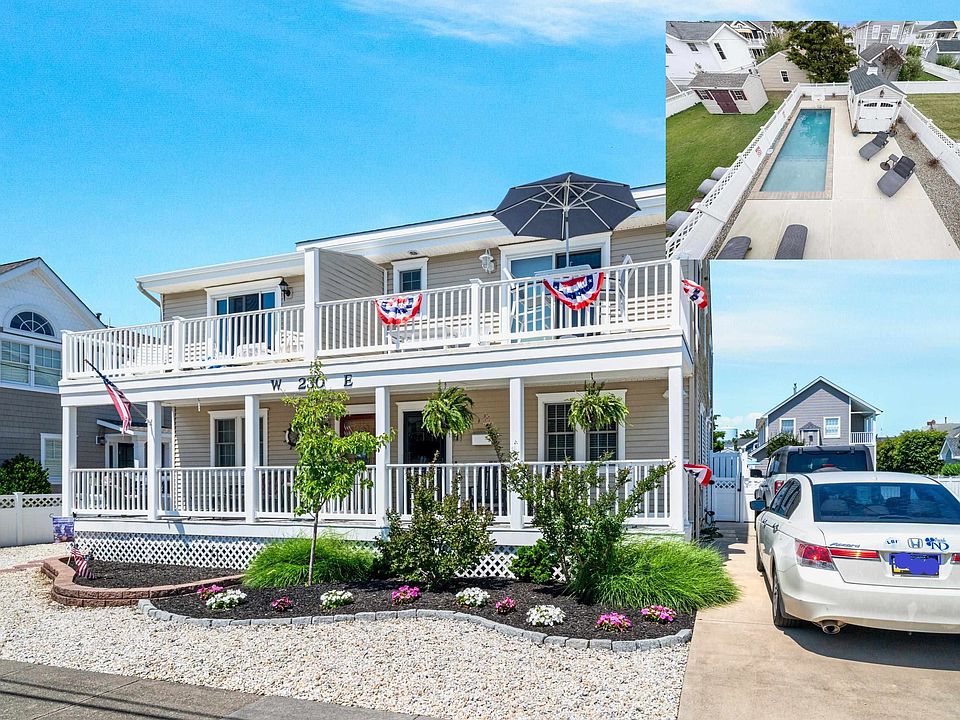 Do Not Miss This One! Super-Rare Townhome in Stone Harbor with Private Pool. An exceptional opportunity in the heart of Stone Harbor — this townhome offers the luxury of a private pool, just two blocks to the beach and close to all the charm of downtown. With 4 bedrooms, 2.5 baths, and a loft, this home delivers space, style, and location. The first floor features three spacious bedrooms and a full bath. The second level opens to a bright and spacious living and dining area, a beautifully updated kitchen, a convenient half bath, and a rear deck offering space for al fresco dining and views of the backyard pool area. Also found on the second floor, the Main Bedroom Suite. The suite includes a stunning ensuite bath and its own private deck with charming streetside views of the neighborhood. An unexpected bonus is the third-floor loft, offering a fun, semi-private space for kids — extremely rare in Stone Harbor. Step outside to your private backyard oasis, complete with a heated pool, room for lounging and entertaining, and a large storage shed for bikes, beach gear, and more. This property offers strong rental income potential, with current owners retaining July and the first two weeks of August for personal use. Whether you're looking for a full-time residence, a vacation getaway, or a smart investment, this property will not last — schedule your private tour today! Property is offered fully furnished, as seen, plus or minus those items listed in inventory in associated docs.