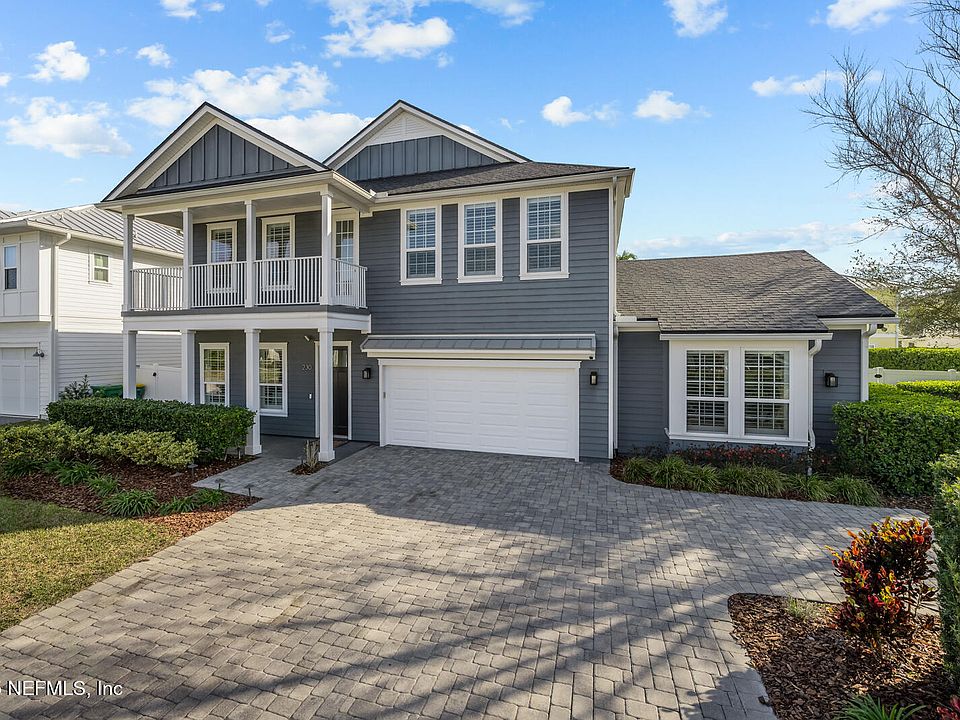 This beautiful coastal home in South JAX Beach is just a short walk or bike ride to the beach and Ponte Vedra Inn & Club! This LOT and A HALF (90 ft wide) was built in 2014 by Mercedes Homes, it offers a bright, open layout with wood flooring, custom cabinetry, and quartz countertops in the kitchen, complemented by an abundance of cabinetry, stainless steel Wolf appliances, including a gas cooktop. The family room, featuring a shiplap gas fireplace, seamlessly connects to the pool and patio—ideal for entertaining. Added electric pool heaters for saltwater pool. Upstairs, the primary bedroom, three additional bedrooms, and a bonus/game room with a balcony provide ample space. Custom closets and a rare first-floor mother-in-law suite with its own entrance and kitchen complete the home. The heated, saltwater pool with Pebble-Tec finish is an added bonus. With dining and shopping just a short drive away, this location can't be beat!