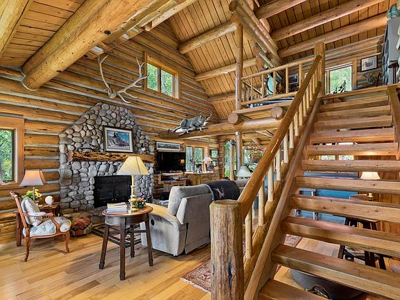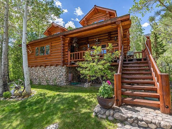 A home like this comes on the market once in a lifetime. This Log Home was built with care and loads of attention to each small detail. Hand cut logs from Montana create a warm and cozy feeling throughout. Located on 8.5 acres at the top of the Aspen Springs Ranch neighborhood, the views are unlimited from your front porch! Enjoy cool breezes will taking in the views over the ranch community, meadows and all the way to Boundary Peak. The property has a Main House, Guest House, and Workshop / Auto Barn. Plenty of room for all your toys, and plenty of privacy. Private well, year round stream, and Aspen Trees. Zoned Equestrian, with a large level area for a pasture.