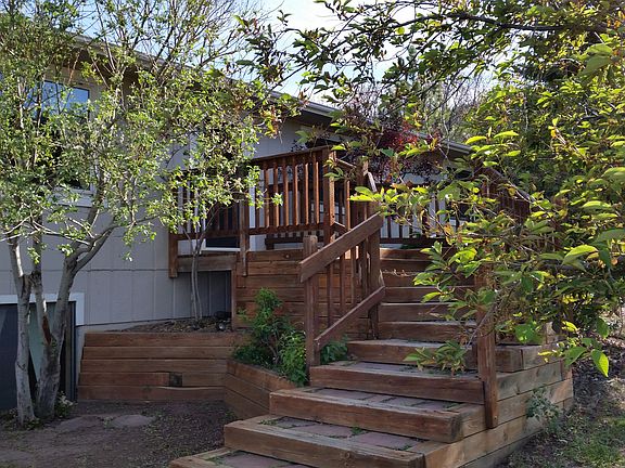 Peaceful home on the edge of the town of Palmer Lake. 3 bedroom, 2 bath. Inviting front porch is a great place to start the day with a cup of java or tea. This home is fabulous for entertaining and outdoor living! Incredible custom work. Relax in the spacious living room with built-in entertainment center/bookcase. Wired for Bose Sound. Cozy gas log fireplaces. There are three custom built fire places in all, the Living Room, Master Bedroom, and in the unfinished basement. Kitchen has granite slab counters and ceramic tile floor. Stainless steal appliances which include a gas stove/oven, refrigerator, dishwasher. Has a full pantry and microwave. Hardwood flooring through out the home and a hall closet near the living room. Large Master Bedroom with a gas log fireplace, French sliding glass doors that open up to the deck. The Master Bath has custom stone tile. There is a free standing shower. The other 2 bedrooms also have hard wood flooring and windows with views. The hall bath has both a shower/tub, linen closet and ceramic tile. Outdoor living area has a custom 1,100 sq foot deck with built in bench seating. The landscape has mature trees including apple trees and bushes, A large fenced grass area in the back and big grass area on the side and front. This home is surrounded beautiful mountain views. You can see Ben Lomand mountain. Enjoy the great outdoors and watch for birds, deer and other wildlife. There is a space for gardening in the back that is well protected from deer. Enjoy the beautiful sunrises and peaceful surroundings, as well as Palmer Lake and the Park nearby.