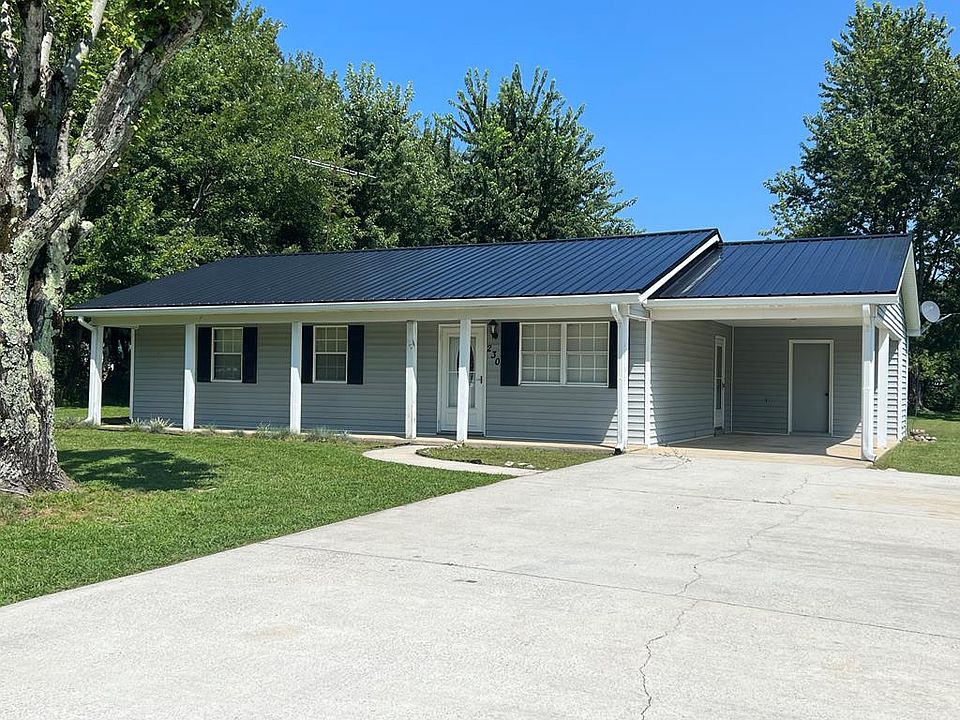 Home has New roof & gutters, carport with storage/workshop room, concrete patio, shed, concrete driveway, covered porch and great location with large level lot. Large kitchen with lots of cabinets, big living room, lots of storage and so much potential.