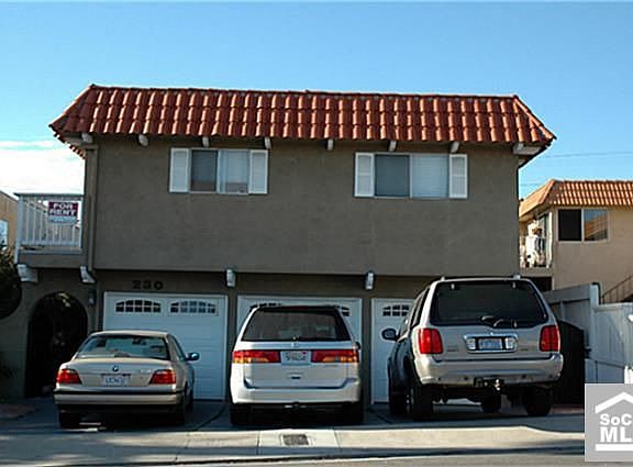 Walk to the beach from this comfortable unit in good neighborhood and near shopping in the heart of San Clemente. Second-floor interior unit of a fourplex. It has living/dining room, kitchen with slate counter/breakfast nook, two bedrooms with mirrored closet doors, one full bath, balcony on the side of unit, attached one-car garage, and driveway spot. Laminate wood flooring in living room. Tile in the bedrooms, bathroom, and kitchen. Baseboards throughout. Kitchen has ceiling fan, stainless steel dishwasher, gas range, and hood. The complex has a laundry room with coin-operated washing machine and dryer: $1 to wash and $1 to dry. The 40-galon hot water tank is located in the laundry room. Half mile to the beach! Five blocks from the San Clemente Pier, two blocks from downtown San Clemente restaurants, bars, and fun! Small pets are welcome. You can see the ocean from the street in front of your home... you're that close!