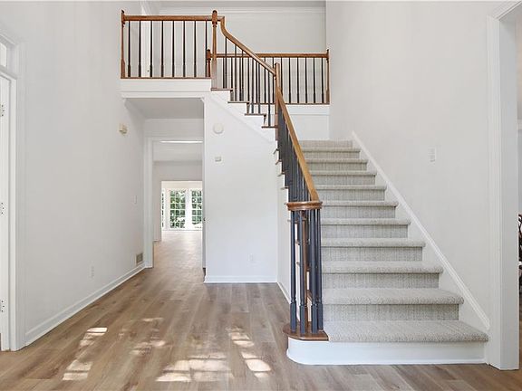 Situated on approximately a 1-acre level cul-de-sac lot, this 5 bed/4.5 bath hardcoat stucco home with a finished basement in sought-after Hadfield swim/tennis community is calling you home! Recent updates include a new driveway and front walkway, new gutters, new flooring throughout the main level, new light fixtures, and fresh paint inside and out. Upon entering the gracious 2-story foyer, a home office with French doors is to the left and a spacious dining room that seats 12+ is to the right. The family room is straight ahead and connects to a light-filled sunroom overlooking the private backyard. The white kitchen includes SS appliances and granite counters and offers access to the covered porch, and the mudroom right off the garage serves as the catchall for backpacks, coats, and more. Access the second floor using the front or rear staircase for the primary suite, 3 addt'l bedrooms, and 2 addt'l full baths. The finished terrace level includes a 5th bedroom (or 2nd home office), full bath, kitchenette, rec room, 2nd laundry room, workshop, and storage. The spacious backyard extends beyond the fence and includes room for a pool. Convenient to Brookfield Country Club and walking distance to Mountain Park Elementary and Leita Thompson Park.