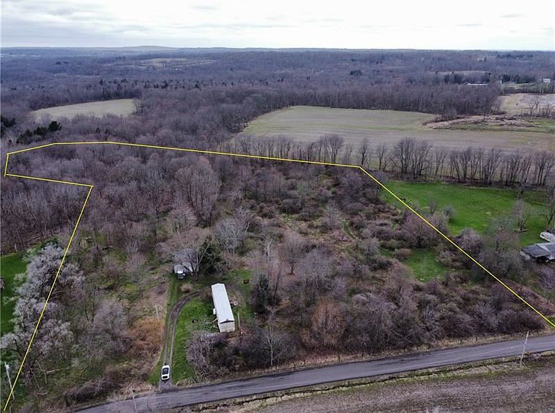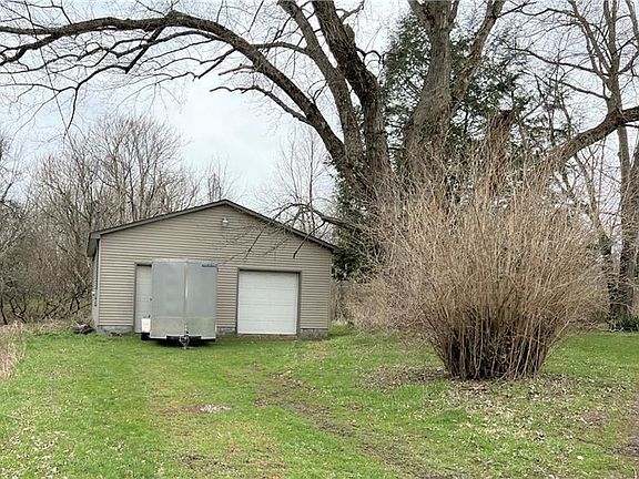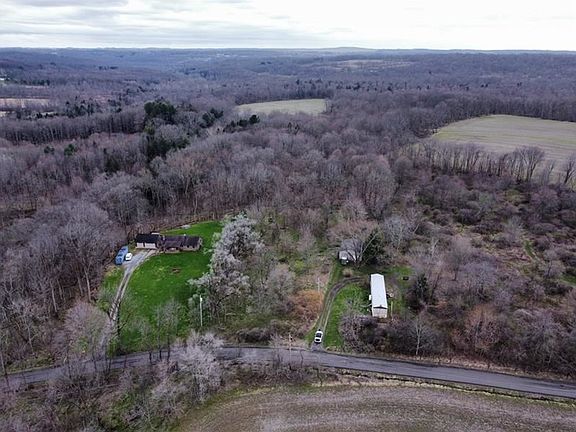 Country camp or get away! Just under 7 acres of gently rolling hills and partially wooded privacy in country setting. Large garage 31x27 with electric and concrete floor. Three bedroom, 1 bath 1993 mobile home approx 924sq ft complete with appliances: washer/dryer, refrigerator, gas stove,(appliance condition unknown) furnace 2020, roof recently re-tinned. Mobile is not secured to foundation- wheels on cement blocks.