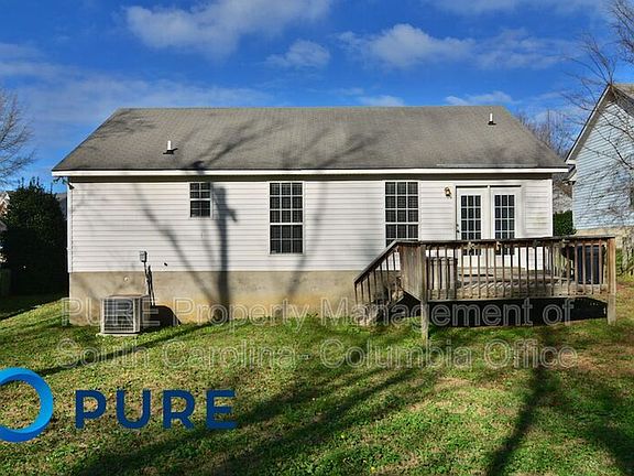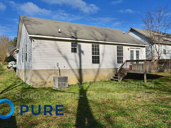 Charming 3 bedroom home in the Riverwalk subdivision in Irmo. This home has a covered front porch and open backyard with wood deck that backs up to a wooded area. Spacious living room with vaulted ceiling, remote-controlled ceiling fan, chair rail molding, and nice laminate hardwood flooring that continues into the hall. Large galley style kitchen has an eat-in dining area, included electric, stove, dishwasher, and side-by-side refrigerator. Master features a ceiling fan, walk-in closet, and private bathroom with single vanity and tub/shower. Two additional bedrooms and a second full bathroom off the hall. Laundry closet in kitchen has full size washer/dryer connections. Convenient to I-26, Harbision dining/shopping, and Lexington/Richland 5 Schools. * allow pets under 25 LBS* All PURE Property Management residents are enrolled in the Resident Benefits Package (RBP) which includes renters insurance, HVAC air filter delivery (for applicable properties), credit building to help boost your credit score with timely rent payments, $1M Identity Protection, move-in concierge service making utility connection and home service setup a breeze during your move-in, our best-in-class resident rewards program, and much more! More details upon application.