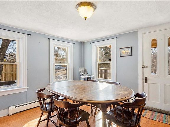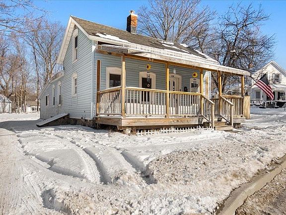 Charming 1880s home with 3 bedrooms and 2 full baths. Highly desirable "one floor living" with the kitchen, dining, living room, primary suite and laundry all on the main level. Two bedrooms are upstairs, which has lower ceilings. Both bathrooms have tiled floors, pedestal sinks, and fiberglass tub/shower units. Kitchen has warm maple cabinets, soft green laminate countertops and tin-look backsplash, a large pantry and comes with black appliances. Major updates include new hybrid heat pump water heater (3 months old), new boiler with 2 zones (2 yrs old) and all new roofs (8 yrs ago). Sellers also rebuilt the front and side covered porches, cleared several large trees, and installed a new fence for the side yard. There's a detached 1-car garage and plenty of off-street parking. In town with sidewalks and streetlights, it's a short and easy walk to downtown where you can enjoy parades, festivals, shopping, and go out for dinner & drinks. Large lot with 0.41 acres. Between the garage and stone wall is a great opportunity to plant a garden or create a recreation/entertaining zone for hobbies you enjoy... I can picture cornhole, horseshoes, fire pit, soccer nets... the possibilities are endless! If you've been waiting to get into homeownership, now is the time.