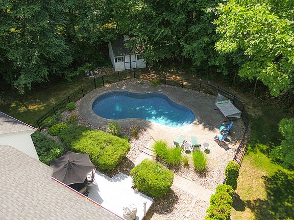 This Marini built brick front beauty sits on a 1.04 private & peaceful cul de sac lot & offers over 3,300 sq. ft. of living space with an open flr plan! The kitchen features new granite counters & floors, SS appliances, a gas stove, generous cabinetry, island, & tile back splash. 2 story foyer & great room with a dual sided gas FP. DR with tray ceiling & striking office! Impressive moldings & hardwoods. 4 BR up including a welcoming master. Additional BR/Den on 1st flr. Dual staircases. 9 ft. ceilings in basement. Stairs to 3 car garage from basement, Dual Zone HVAC. IG sprinklers. The deck tiers to a stamped concrete patio surrounding the heated IG pool (New liner & heater). Plenty of level yard space resembling a beautiful park like setting! Contingent on seller finding home of choice.