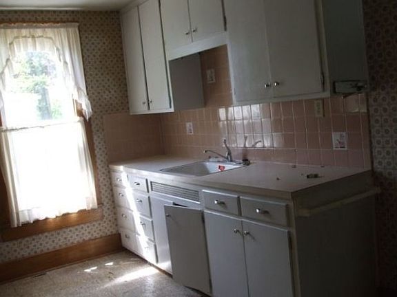 Unusual floor plan. Two kitchens. Enclosed rear porch. Dated, just waiting for someones decorating skills to shine.
