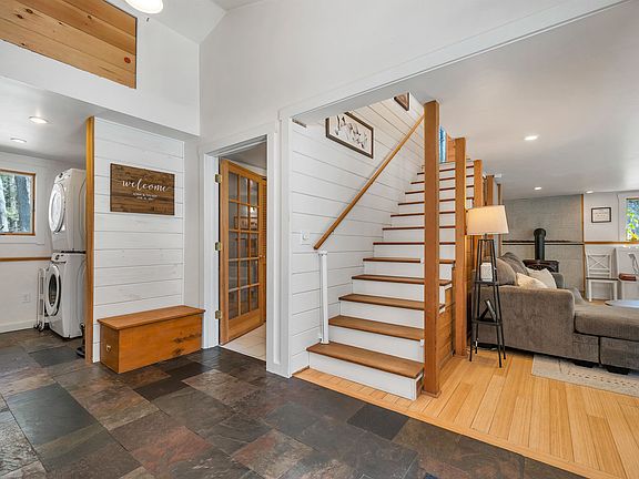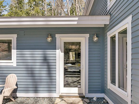 This Quechee contemporary reflects a vision for a cozy cottage blending modern and natural design features. The stylish home offers a modern kitchen and an open living and dining area centered around a gas stove, perfect for gatherings, with a granite hearth, wood and slate tile floors throughout. A vaulted ceiling creates a private retreat feel for the primary suite, which features a walk-in tile shower and its own private deck, bathed in natural light, where you can bask in the warmth of the winter sun or unwind with gentle summer breezes surrounded by nature. The home also includes two main floor bedrooms and a full bath. Nestled into its wooded landscape, the property is accented by patios, custom stone walls and gardens. It is highly energy-efficient with radiant heat, on-demand systems, and a Nest thermostat. For extra convenience, there is also a large shed for additional storage, perfect for outdoor gear, tools, or hobbies. Enjoy the manicured outdoor space and direct access to Section 5 trails for hiking, biking, dog walking, and winter activities. Located on a corner lot, the home is also just a short drive to the Quechee Club. As a resident, you'll have exclusive access to Quechee Lakes' world-class amenities, including 36 holes of championship golf, tennis, pickleball, paddle tennis, a state of the art health club, a ski area, indoor and outdoor swimming pools, and a pristine lake with a sandy beach. This home is the perfect four-season Vermont retreat.