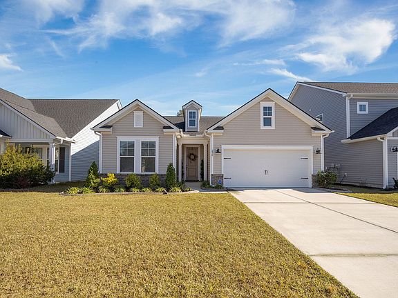 Welcome home! This beautiful Sycamore floor plan is a single story, open concept home with plenty of space and upgrades through out (please see upgrade sheet). You are greeted with a large open foyer with beautiful wainscoting and off to the left you will find your secondary bedroom and full hall bath as well as a third bedroom currently used as a private study with French doors. To your right you will find a large laundry room, custom drop zone and an additional half bath. This home features an open kitchen with oversized island overlooking the large great room with a butlers pantry connecting your formal dining to the right of the kitchen. The spacious primary suite is privately located off of the great room with a spa-inspired bath, and large walk-in closet.Enjoy your private backyard oasis from your screened in porch. Explore the 325 acre private lake system that only residents of The Lakes are able to enjoy or hop on a golf cart to explore miles of wooded walking and jogging trails. Jasmine Point also offers a resort style pool and brand new play park. Cane Bay YMCA, Publix, shopping, dining, gas station, highly rated schools and more, make for a true master planned community. Don't miss out on what lifestyle awaits you with this wonderful home in Cane Bay Plantation. *** Kitchen currently has an electric range but is wired for gas cooking. Owner preferred a double electric range. *** Refrigerator can convey with appropriate offer.