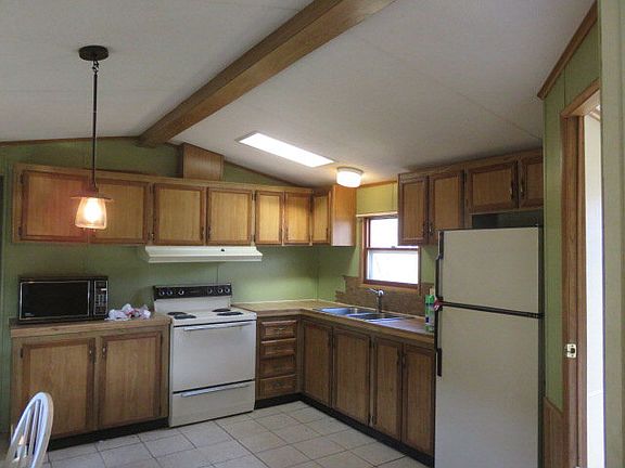 Manufactured home right in town on .37 acres. This 3-bedroom single-wide has much to offer including a 2-car garage on a foundation, a heated tool shed, and a dog kennel on a slab, and a new, sturdy fence in front. A newer gas furnace makes it economical to heat. Laundry ares is right off the kitchen, and also includes a nice sized pantry. 5-year-old roof has 30-year construction. Nice patio with a view of a stream. Nothing to do except move right in!