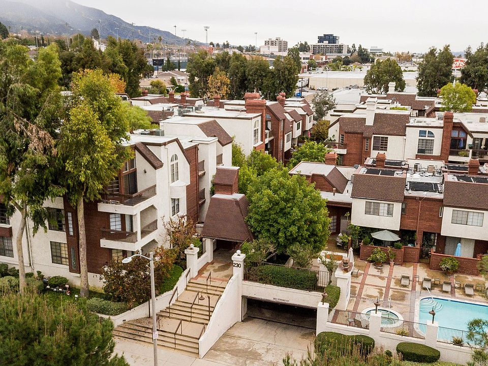 Prized Bethany Woods single story condo with one of the best locations in Burbank! This meticulously maintained condo is on the first floor, and features 2 bedrooms, 1 3/4 bathrooms, and is move in ready! The large living room has a fireplace, a dining room, and plantation shutters as well as an outdoor patio. The master suite has loads of closet space and a private bathroom with dual sinks and large shower. The other bedroom has custom made built-in desk and shelves so it could double as an office. The kitchen is light and bright with tile counter tops and has a breakfast bar that is open to the dining room. There is side by side laundry in the unit. This complex is highly sought after due to amenities including a gorgeous pool and large clubhouse/recreation room, as well as its close proximity to McCambridge Park, grocery stores, and other shopping and transit. There is subterranean parking with additional storage, plus an elevator. Come make this one yours today!