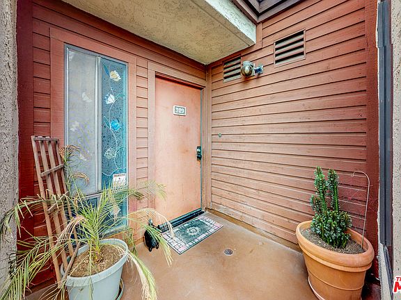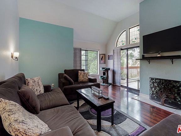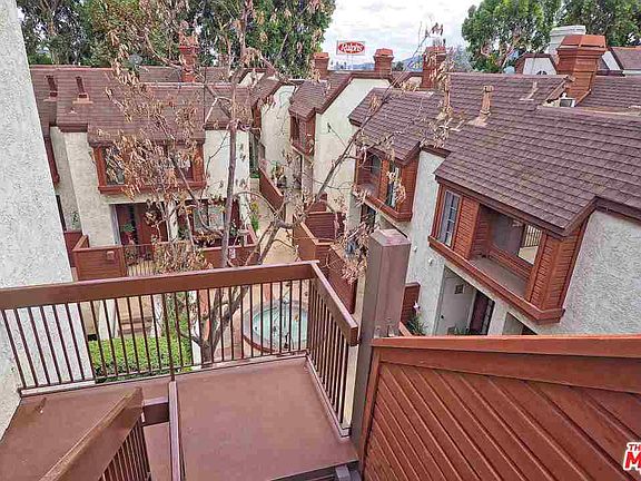 A rare top floor, end unit that is light, bright, spacious and move in ready; close to the elevator. There's a large kitchen, modern tiled floors and an eat-in area under a skylight. Hand made barn doors enclose a full, stylish laundry closet with storage. The living room/dining room are spacious with an open layout, gas fireplace, high ceilings and lots of light leading to a large patio with views of mountains, perfect for entertaining or a quiet morning coffee. There are 2 bedrooms and updated bathrooms. Spacious master has high ceilings and lots of storage. The vaulted ceilings and high windows make this a very bright unit throughout. The complex has a pool, 2 spa's, clubhouse, side by side parking in a gated underground structure. As you walk through the complex, there are fountains throughout and well maintained landscaping. Just a few minutes walk to shops, restaurants and a few blocks from Burbank's shopping center, this unit is a rare find in Burbank.See Virtual tour