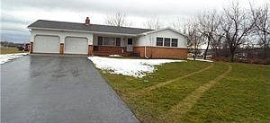 Surprisingly modern open floor plan. Very solid, well built 3 bedroom ranch sits back from the road on a 2 ? acre lot. Living room boasts a field stone fireplace. The very large, workable kitchen with 1st floor laundry, and deck off kitchen makes this a very functional family home. Basement could easily be finished. Save on your heating bill with the wood/coal forced air stove. Larger bedrooms and Akron schools.