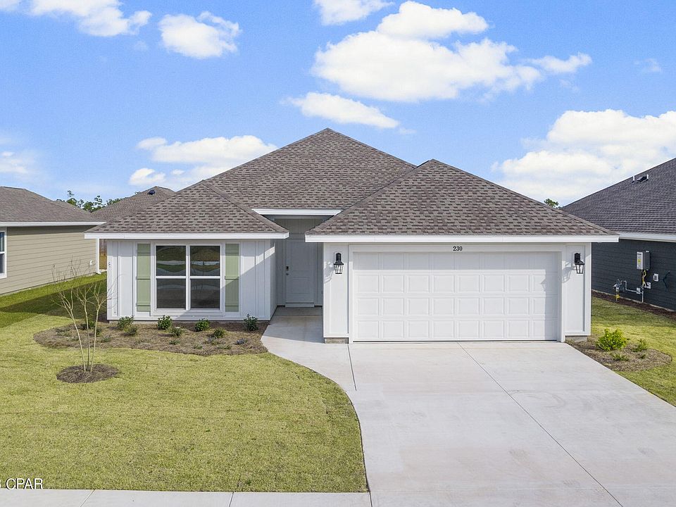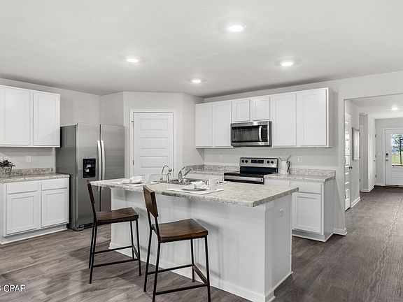 This Rushmore open floor plan home featuring 4 bedrooms, 3 bathrooms. This home has stunning interior featuring 10' high ceilings in the main living areas and a 9' tray ceiling in the master suite. Engineered Vinyl Plank floors, granite countertops, and so much more are found throughout the home. The exterior boasts of Hardi Board on all four sides, Tankless Gas Water Heater, and a completely landscaped yard with a sprinkler system. Offering added innovative technology and convenience, this home is equipped with a SMART Things hub, a Ring security doorbell, a Samsung tablet, and a Nest energy-efficient thermostat. Conveniently located to shopping, recreational parks, schools, and Tyndall Air Force Base.