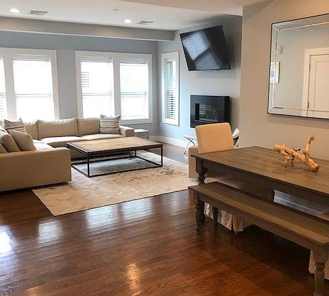 Sun drenched, 2016 ground up construction condo with attached garage parking available for a Dec 15th /Jan move in. Pet friendly condo consists of a large open floor plan on the second floor with open concept living room featuring a gas fireplace, dining room and large kitchen. The Kitchen boasts an 8-foot island, Bosch appliances with shaker cabinets and an engineered countertop complete with wine fridge, exterior vented hood, tile backsplash, central air, and additional storage. Master bedroom has a 10 x 4-foot deck along with an en-suite bath with double vanity and 5 x 3-foot glass shower. Another large deck off main living area large enough for patio furniture and a gas grill. Layout is ideal for roommates or a couple looking for an extra guest room. Close to public transportation, local restaurants, grocery store, etc. Flexible lease term, tenant to pay broker fee.