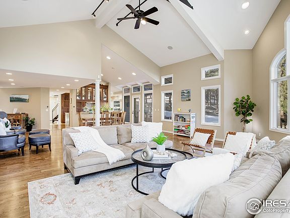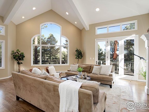 Nestled in the sought-after Pine Brook Hills neighborhood, just minutes from downtown Boulder, you find this Architect-designed gem. The high vaulted ceilings meet walls of windows that welcome the outdoors in and soak the home with sunlight while capturing views in every direction. Whether you love entertaining or are looking for your private oasis, the open layout, generous sized spaces, and indoor/outdoor flow won't disappoint. The chef's kitchen features high end appliances and a gas stove, two islands, and a greenhouse just steps from the kitchen door for fresh herbs and veggies year round. Outside you can enjoy the views from multiple deck and patio spaces, as well as plenty of flat space to play. Your bedroom spaces are separated into two wings upstairs. Enjoying a whole wing to itself, the primary suite features a private deck and a spa-like en suite bathroom with a soaking tub and heated floors. No detail was missed from dual home offices, to the walk-out basement, flat freshly paved driveway, large mudroom, and new garage workshop with custom cabinets. Welcome home to your harmonious mountain retreat.