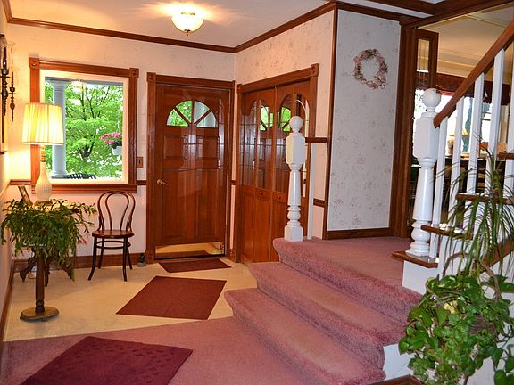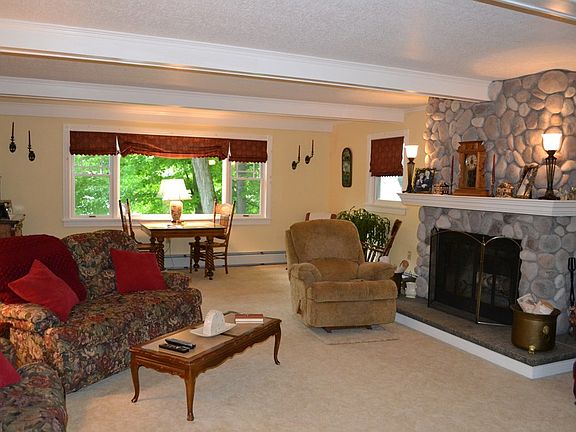 Stately ,very well maintained village home with expansive family room, large open kitchen dining area, front sitting porch , comfortable bedrooms, updated bath , 2nd floor laundry, and beautiful grounds. This large home has had Many upgrades including furnace, all new windows. roof, back deck and updated upstairs bath/laundry. Efficient heating. Close to trails, Lake Colby beach , and Ampersand Park for your kiddos. A couple miles to Lower Lake and a quick walk in to the village! This home is a MUST-SEE!